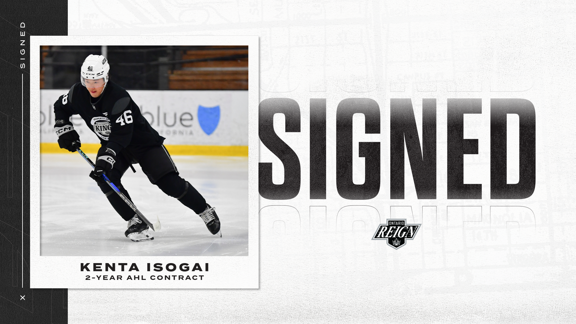 The addition of Isogai on an AHL contract gives the Reign eight players signed for the upcoming 2025-26 season, with previous announcements including Jacob Doty, Jack Hughes, Jack Millar, John Parker-Jones, Tim Rego, Isaiah Saville and Mattias Sholl.