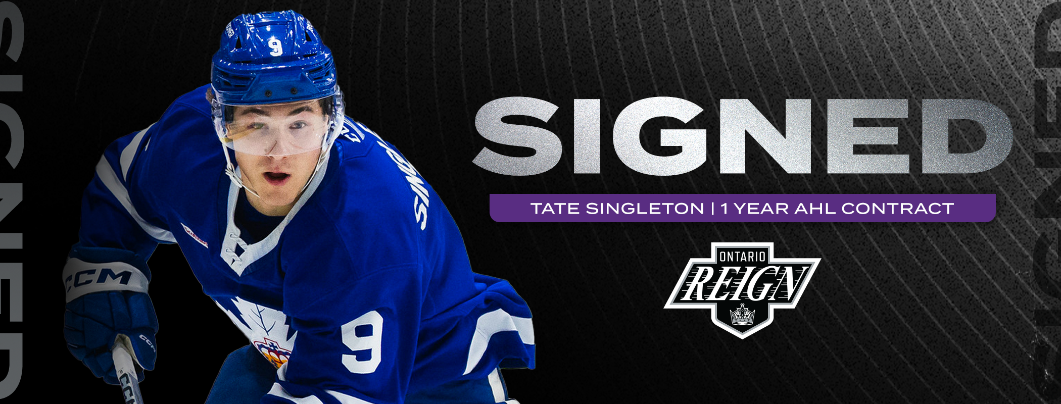The Ontario Reign, proud AHL affiliate of the LA Kings, have announced the signing of forward Tate Singleton to an AHL contract for the 2024-25 season.
